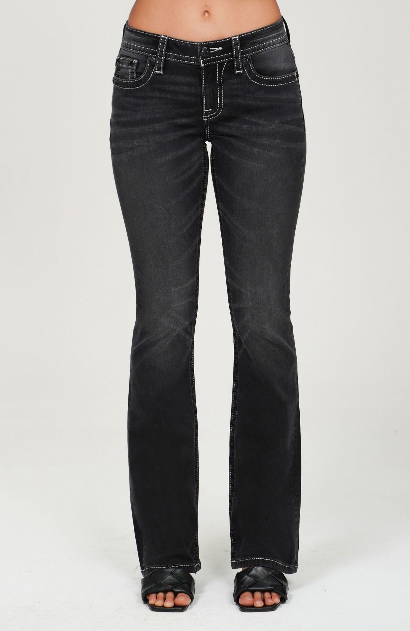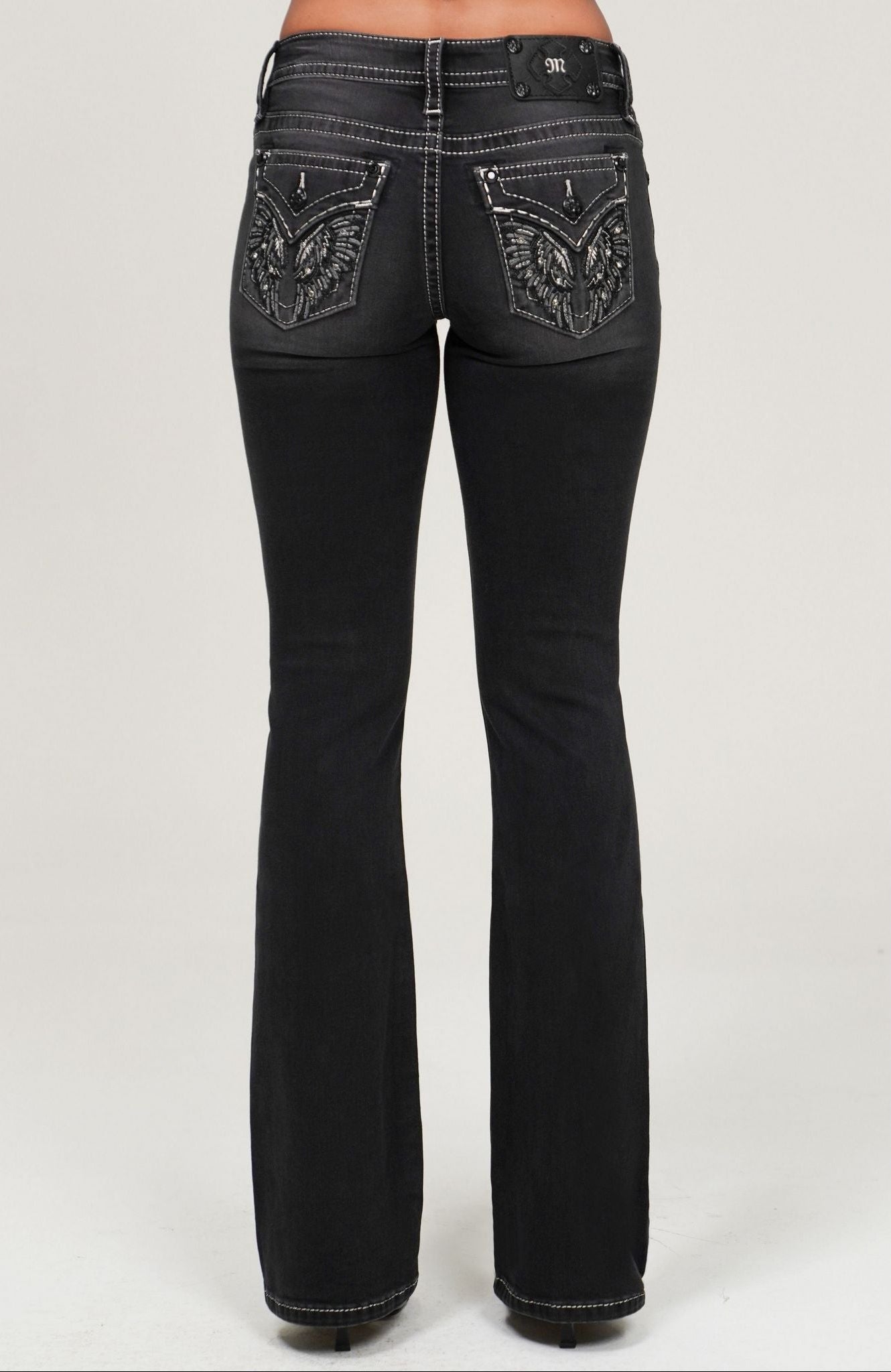 Miss Me Wing Stitch Bootcut Jeans (Grey)