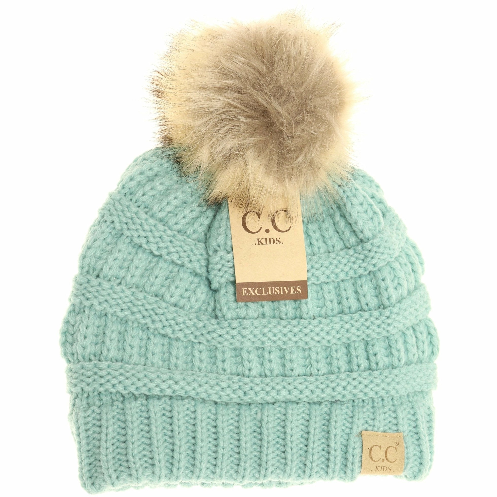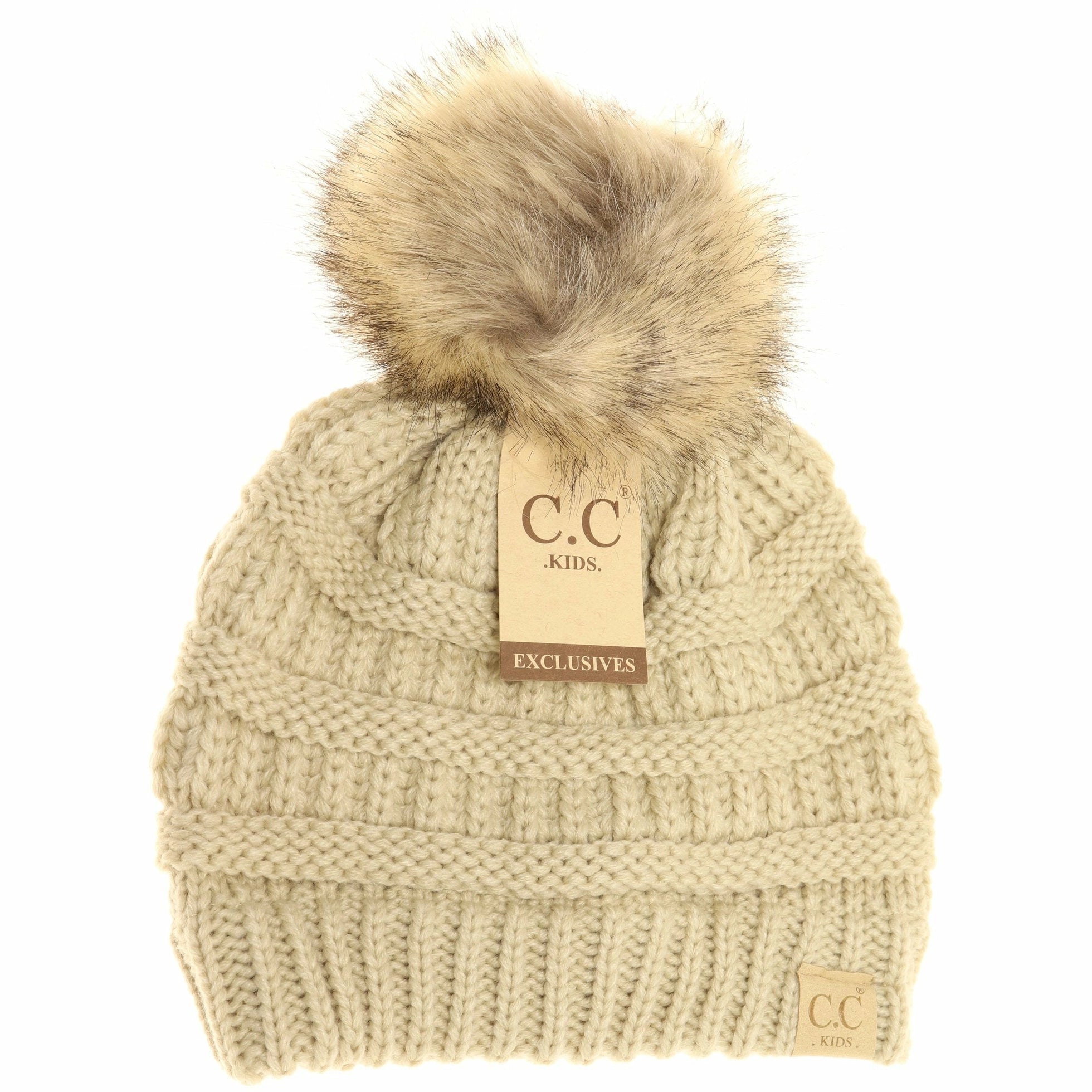 Kids Faux Fur Pom Beanies (Multiple Colors)