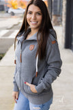 - Cowl neck hood with adjustable rope drawstrings and vegan leather caps