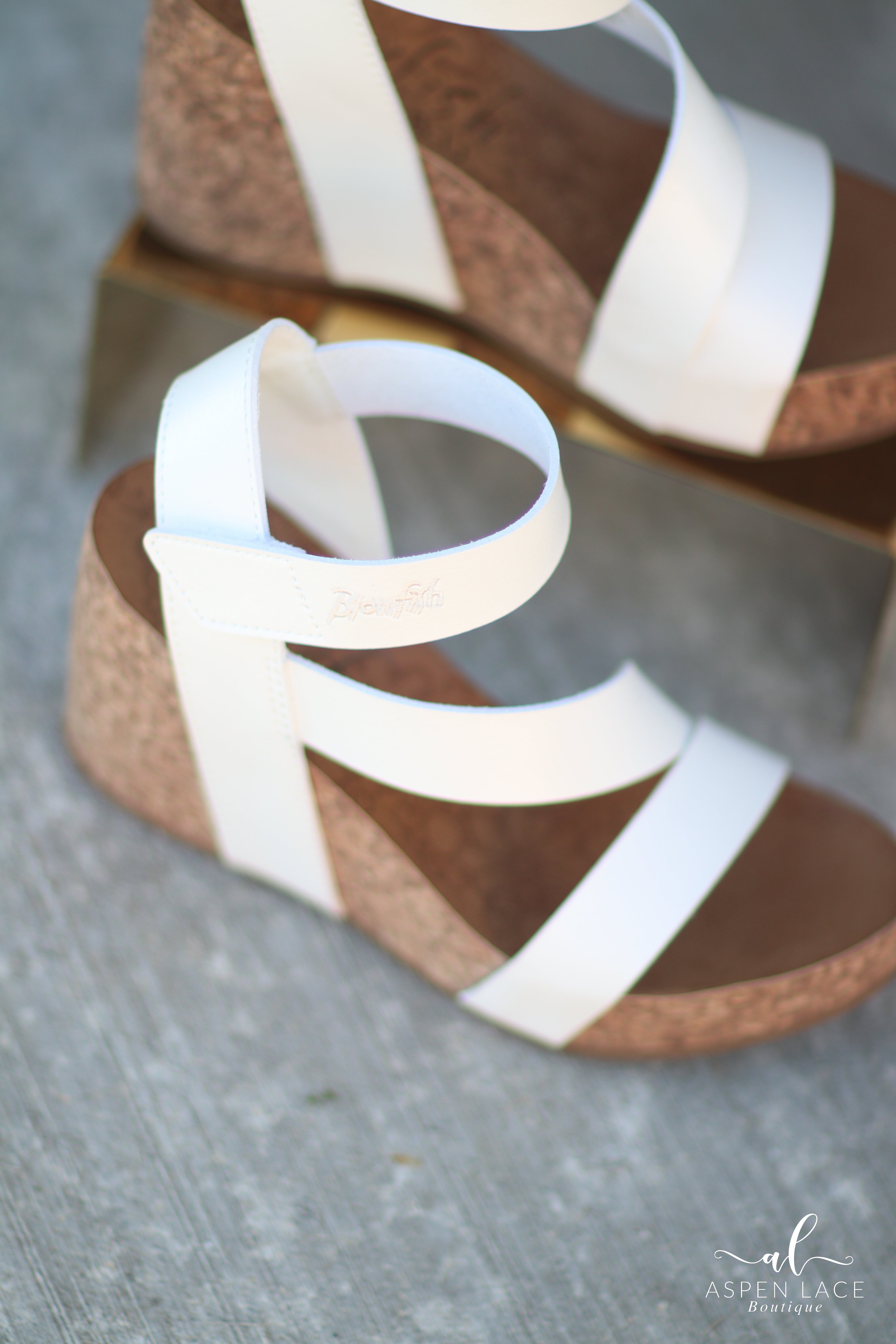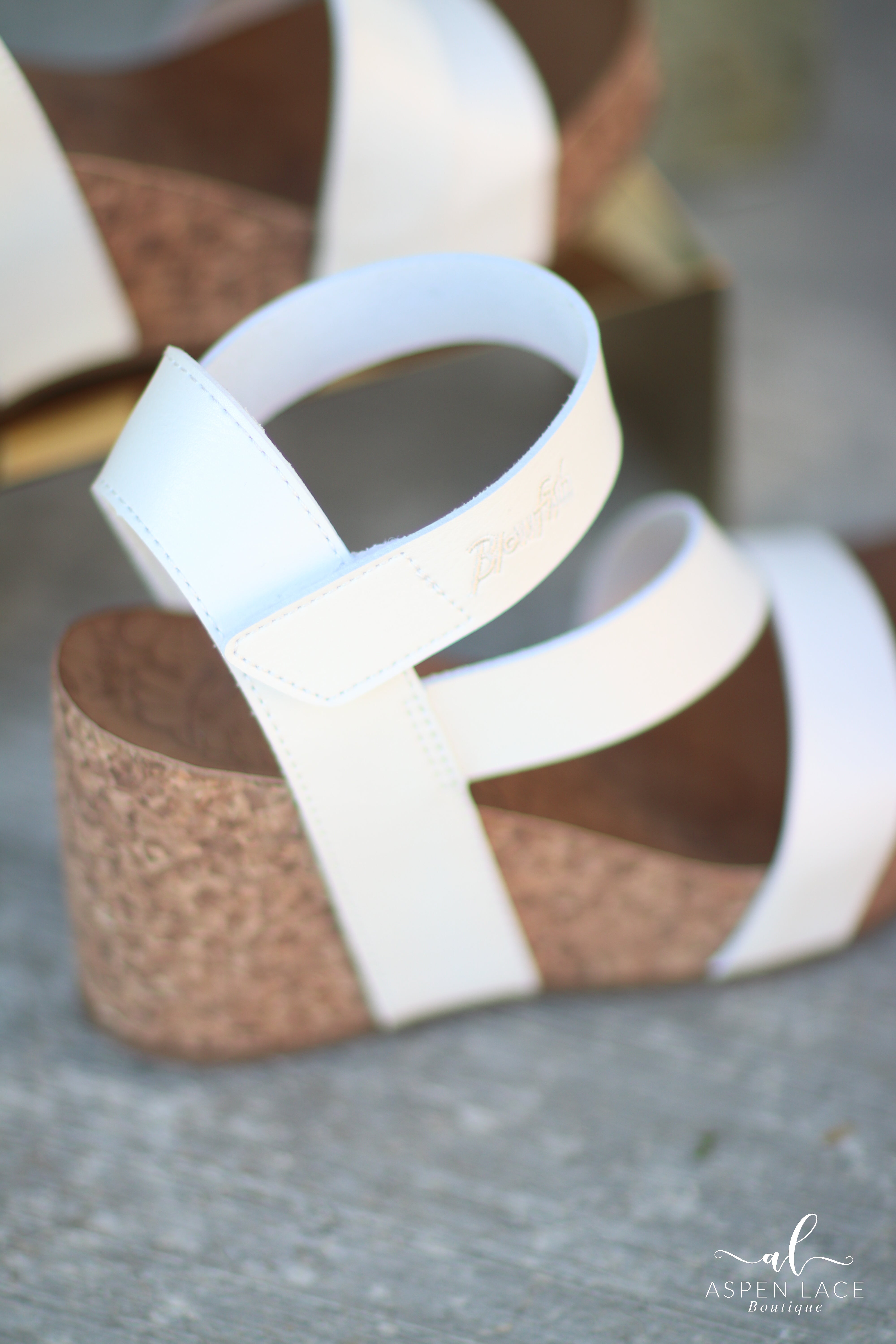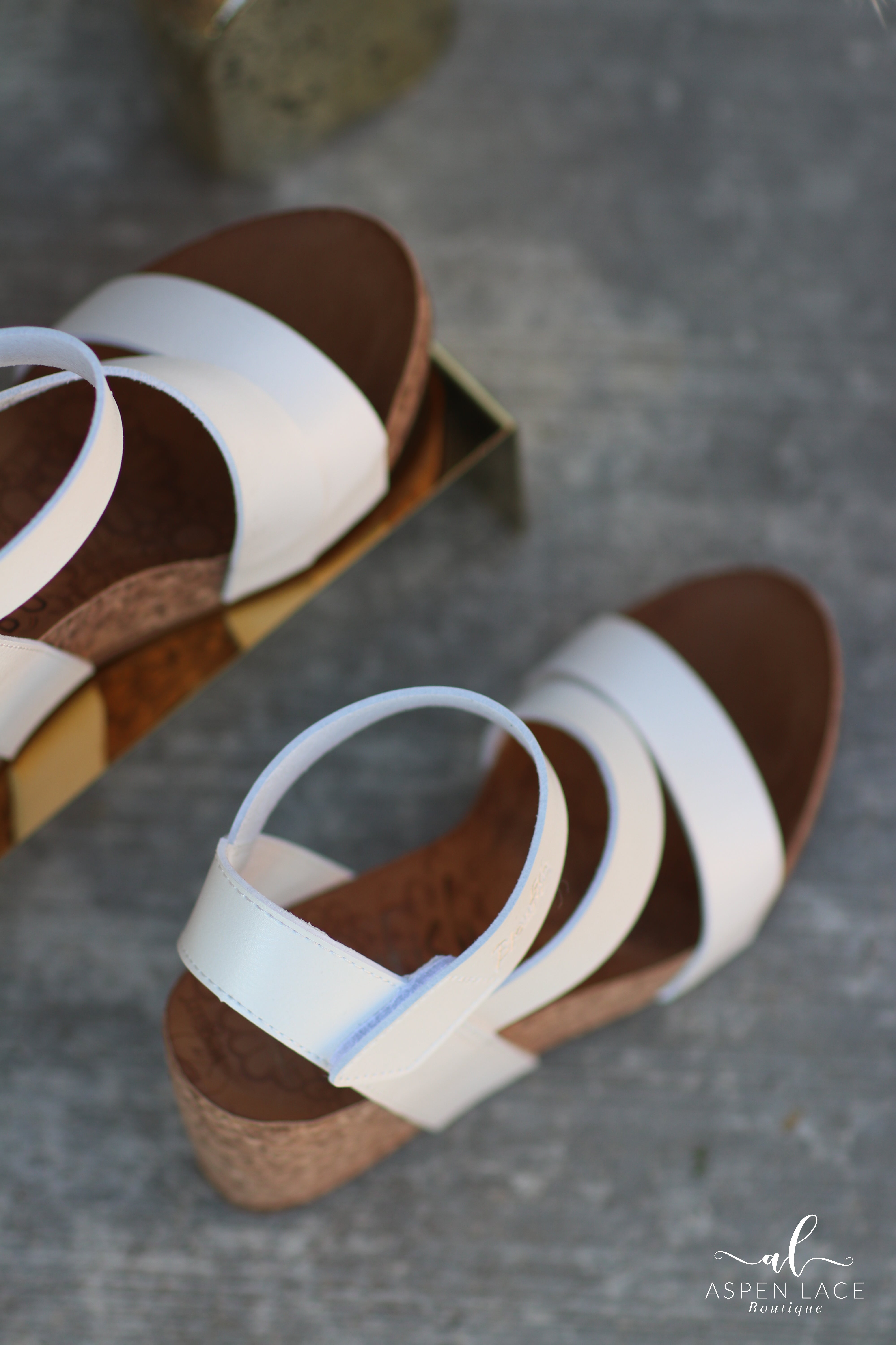 This lovely wedge features a faux-leather upper and faux cork sole. Pair this with your favorite summer dresses and you've got yourself a sweet look!