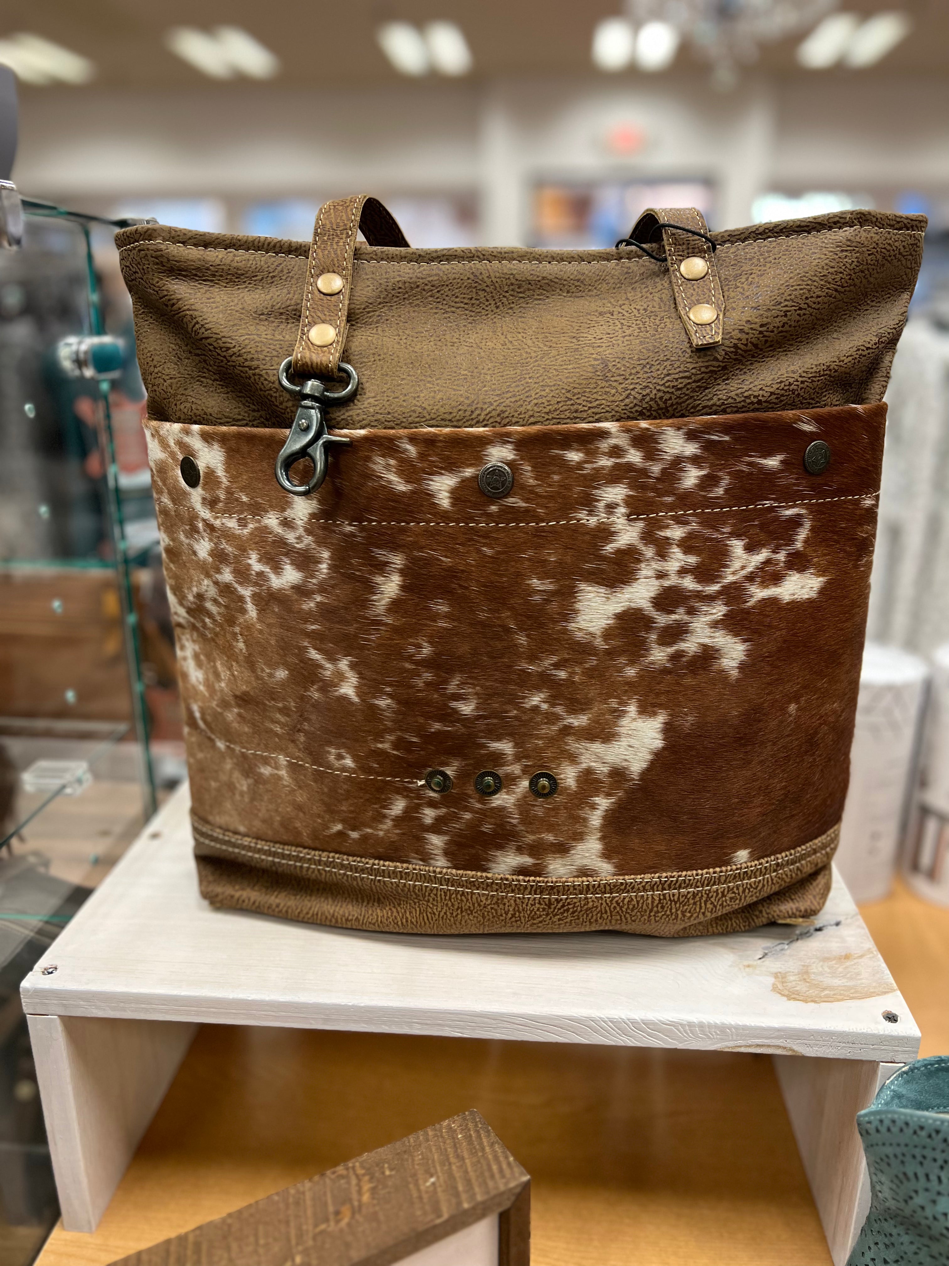 Large capacity leather and hairon tote that can hold books, laptop, notes and otherthings you daily use. You can use it as shopper tote,business tote,work tote,teacher tote,school tote bag,daily tote. Made of hard heavy duty First Layer leather.