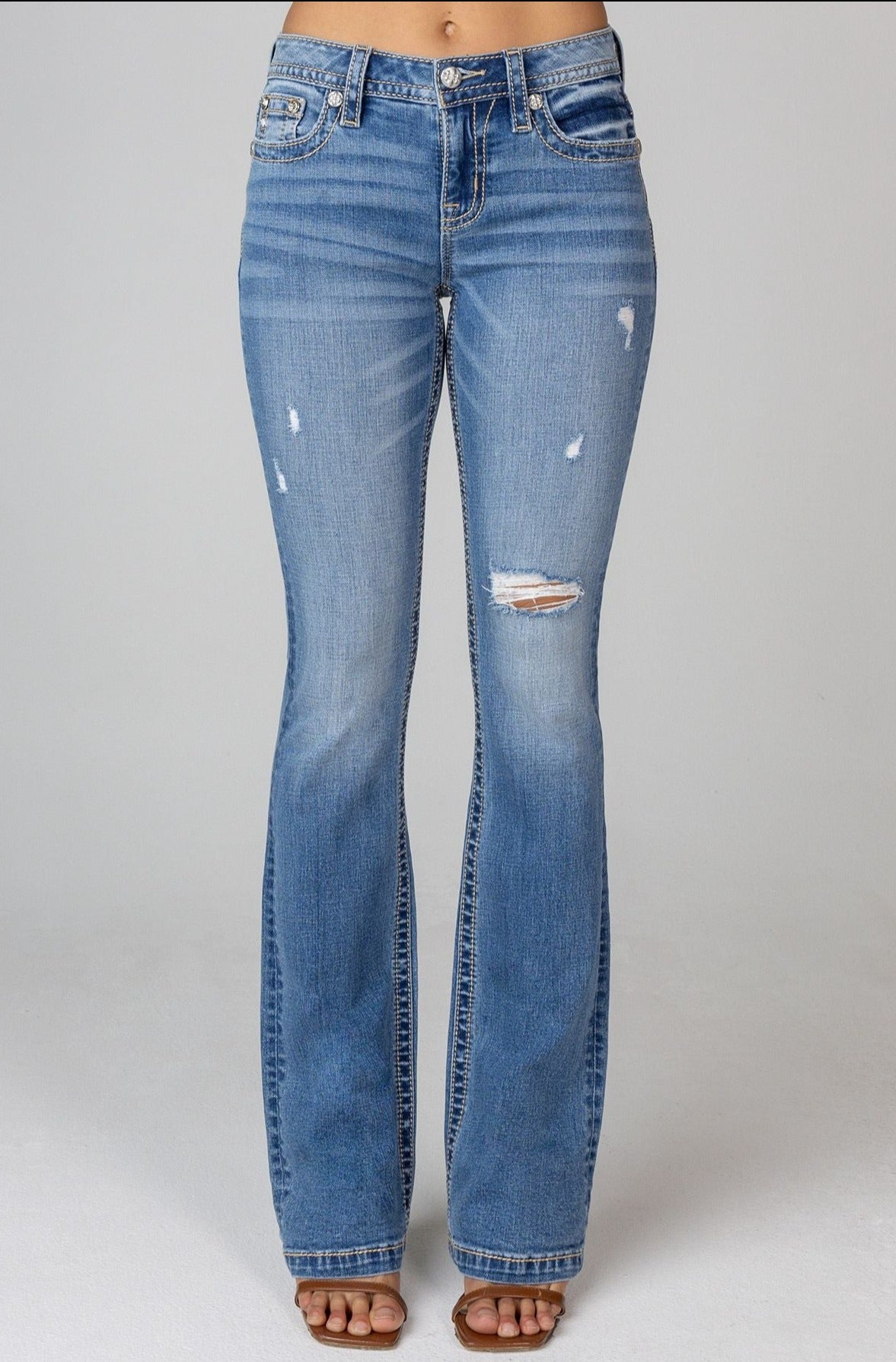 Miss Me Light Plain Stitch Bootcut Jeans