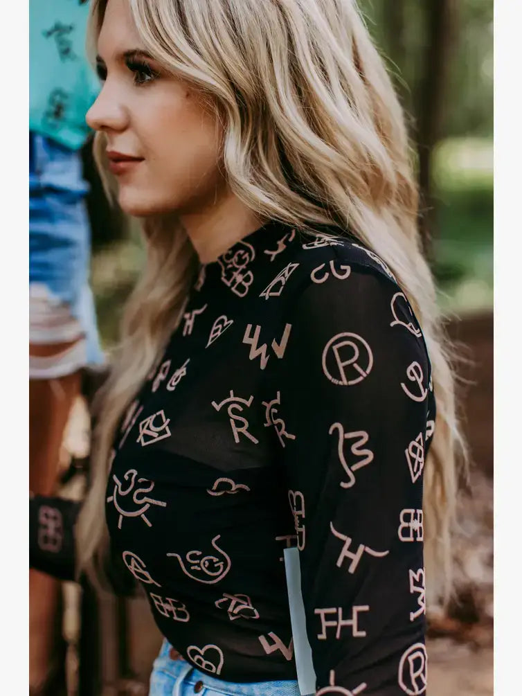 Branded Print Mesh Top (Black)