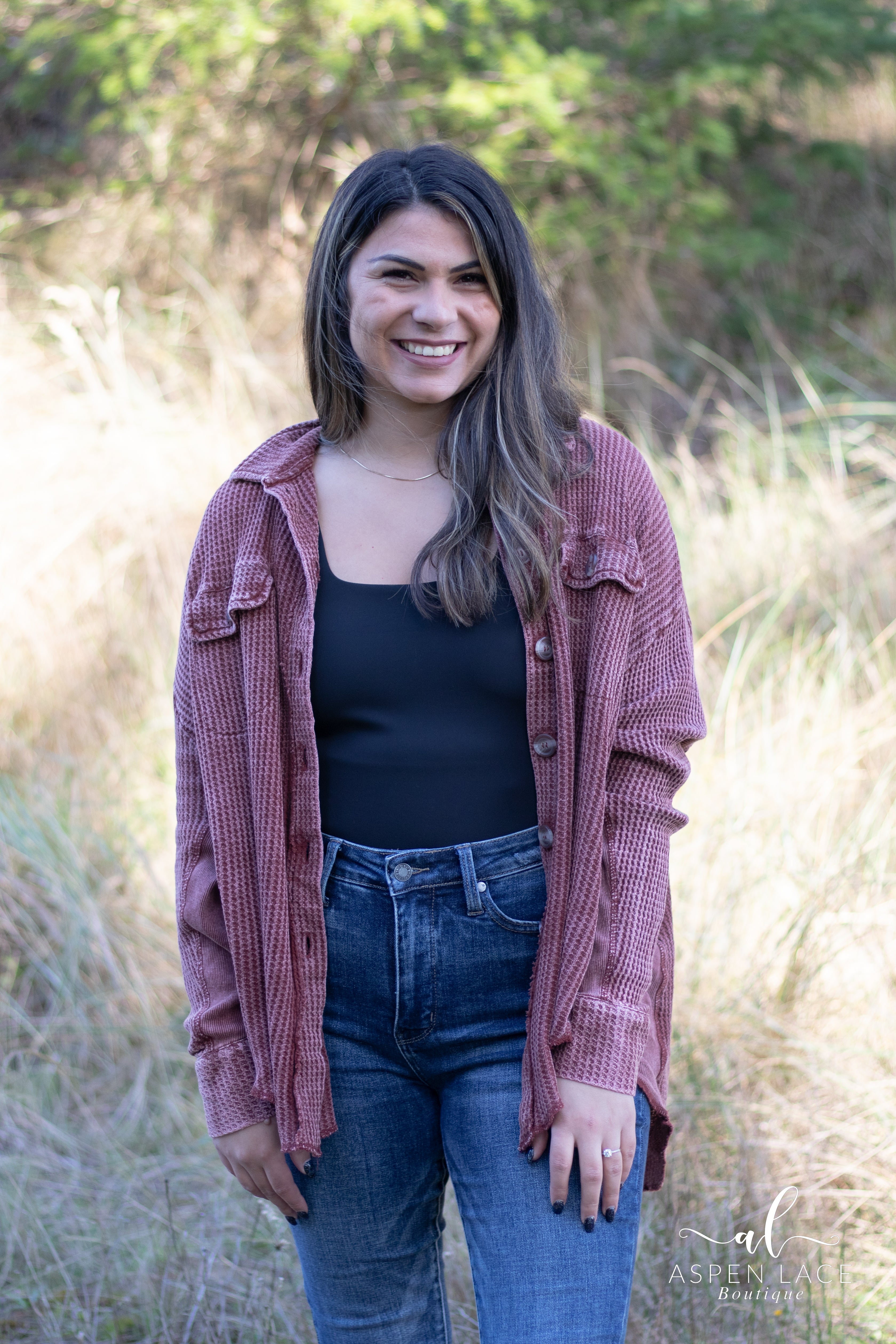 • Acid wash waffle shacket