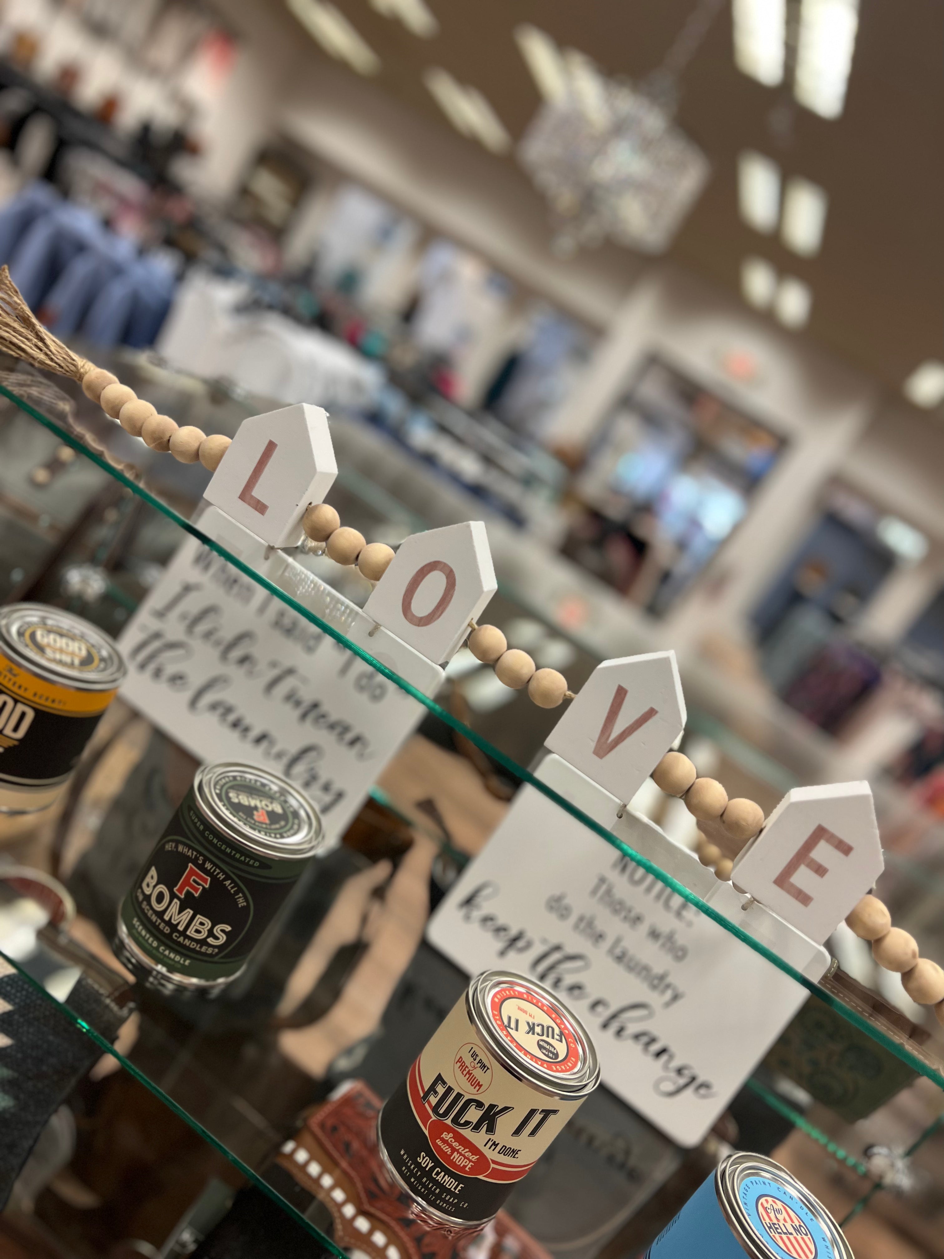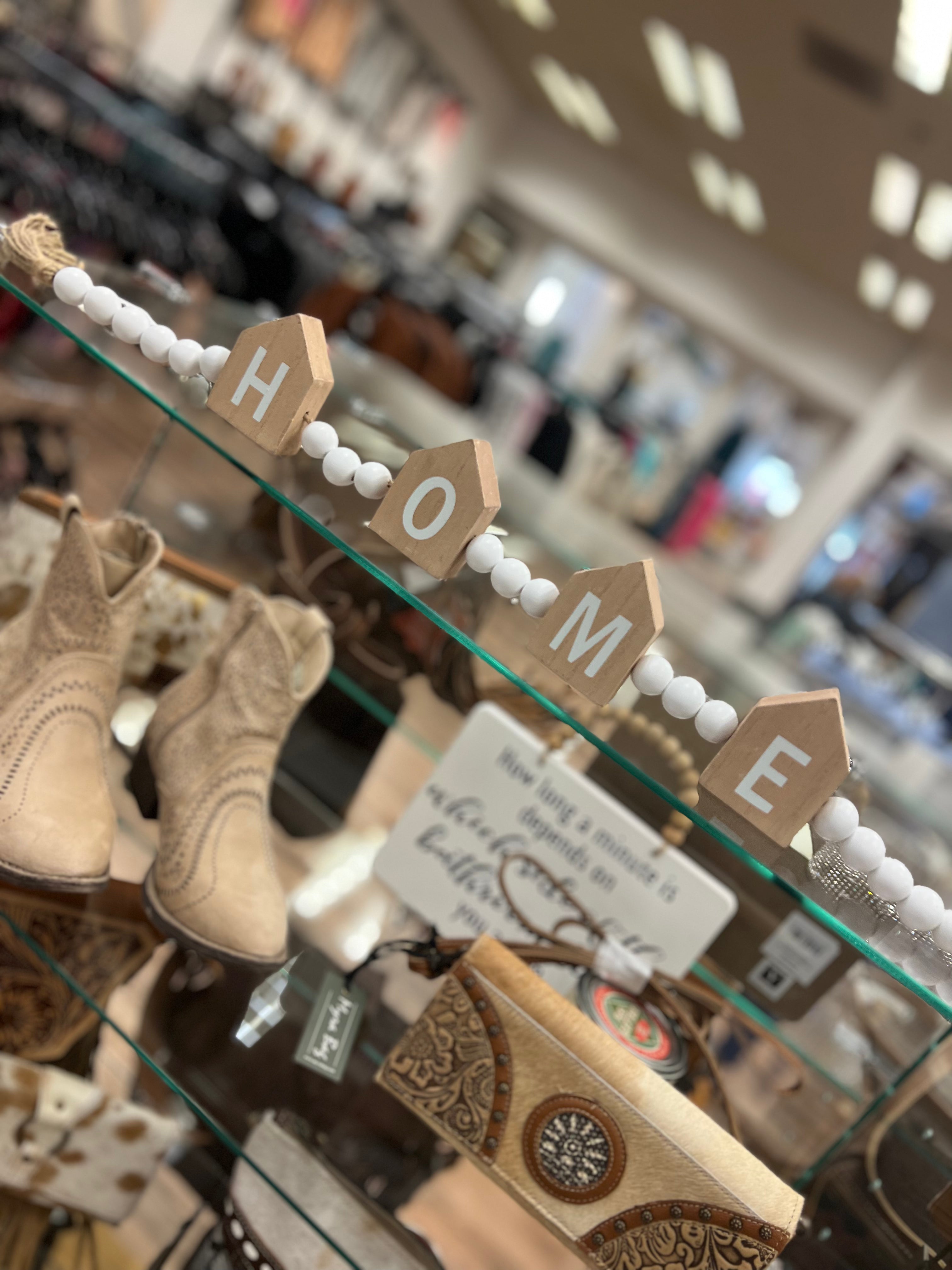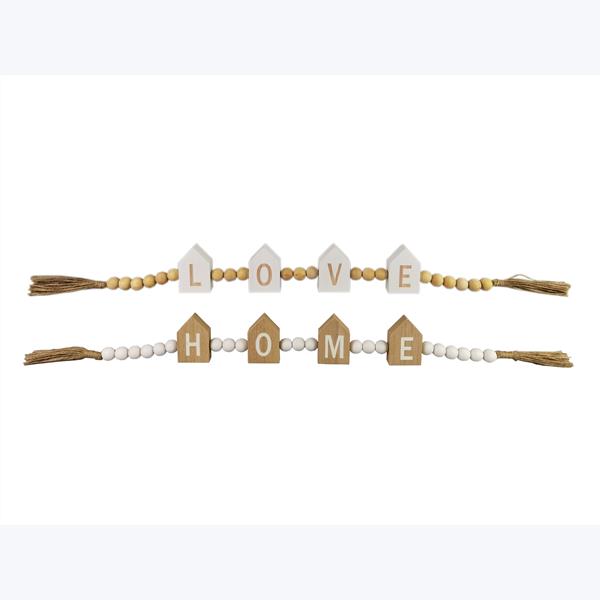 - Wood blessing beads with tassel ends tabletop sign that comes in either Love or Home